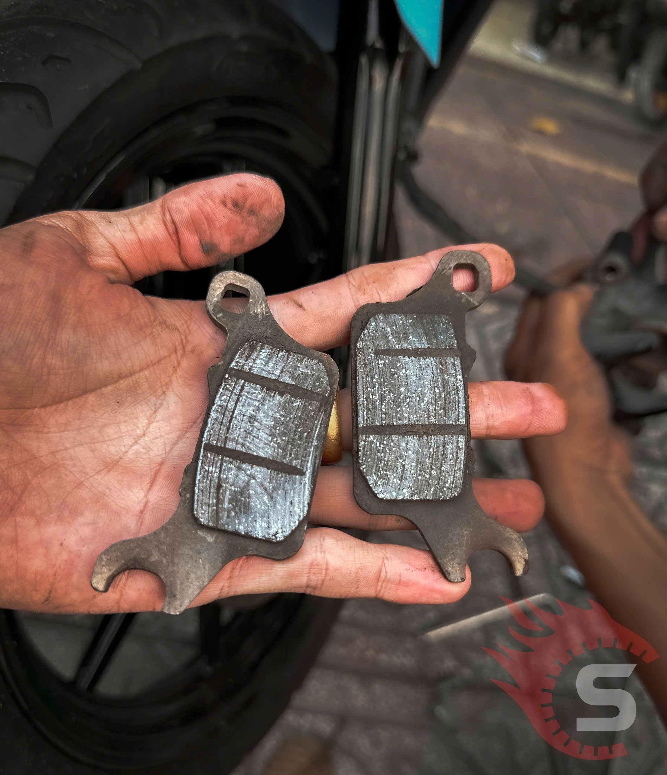 - Quan sát độ dày của má phanh. Nếu má phanh mòn dưới 2mm, bạn nên thay mới.