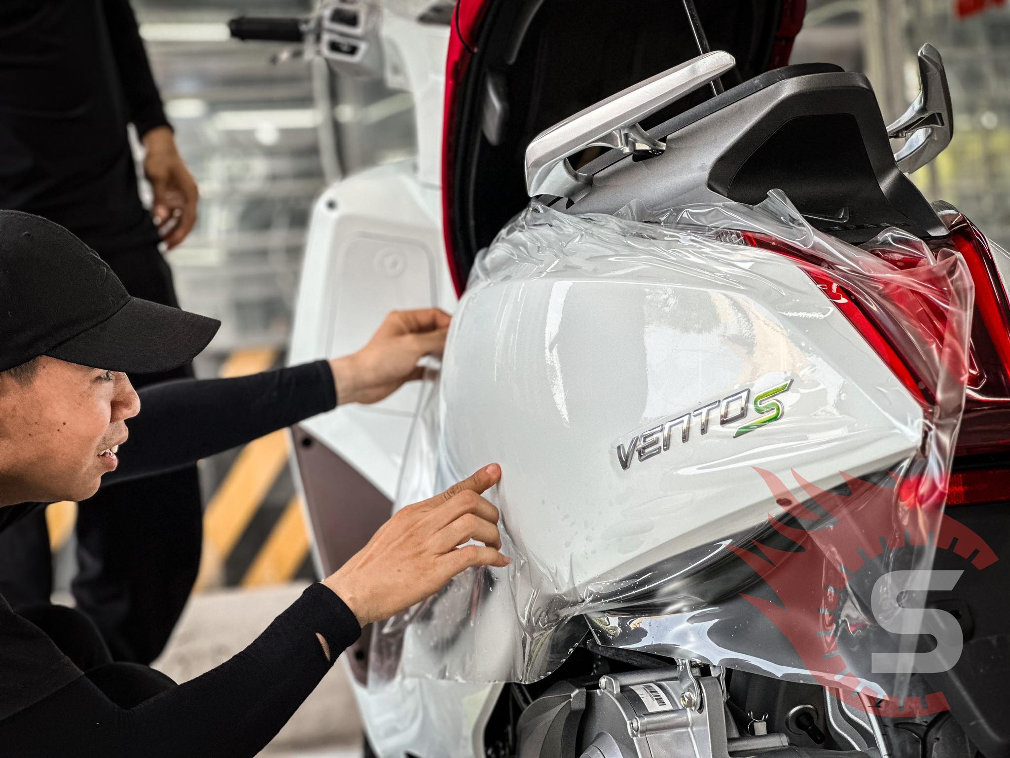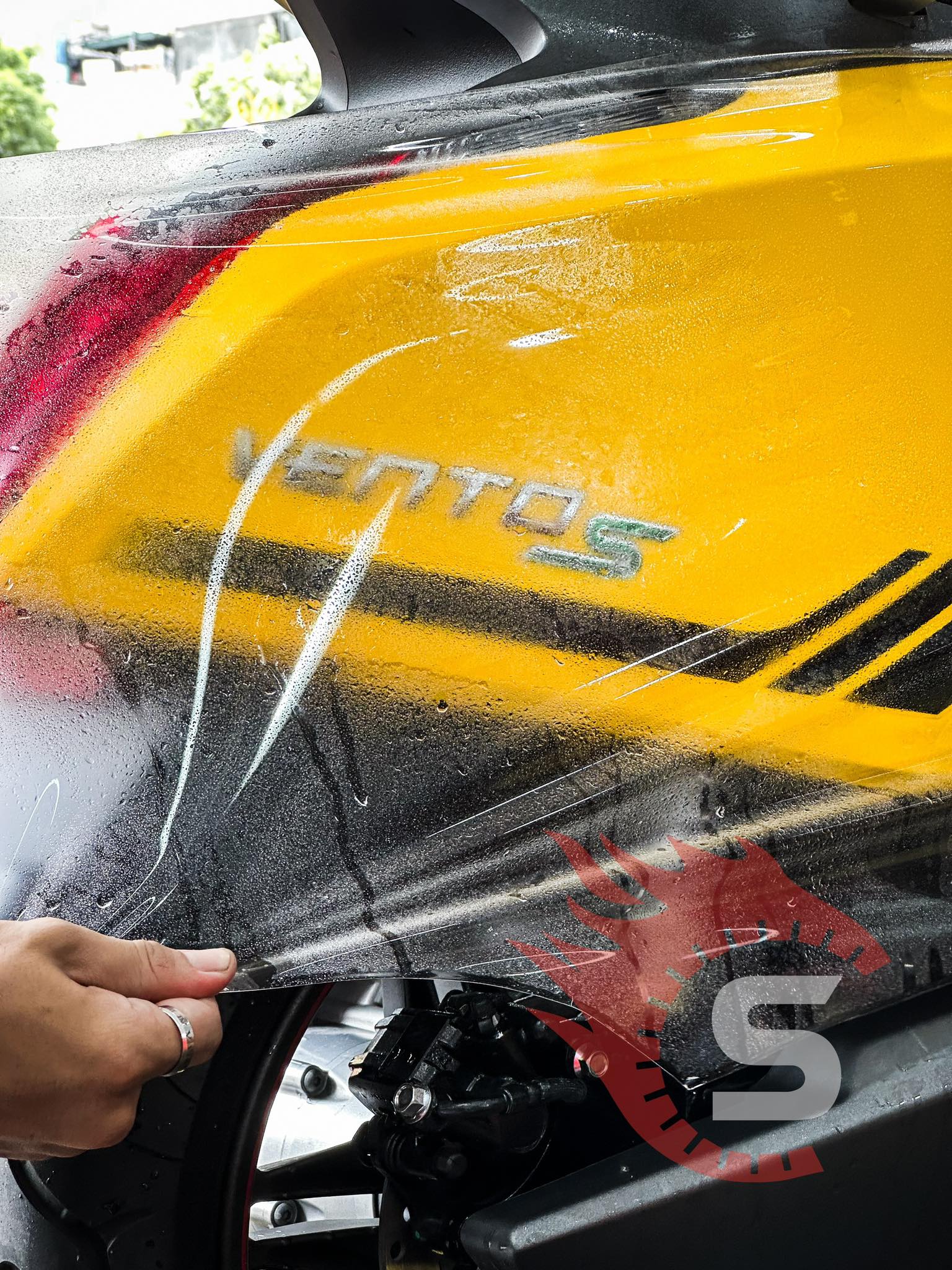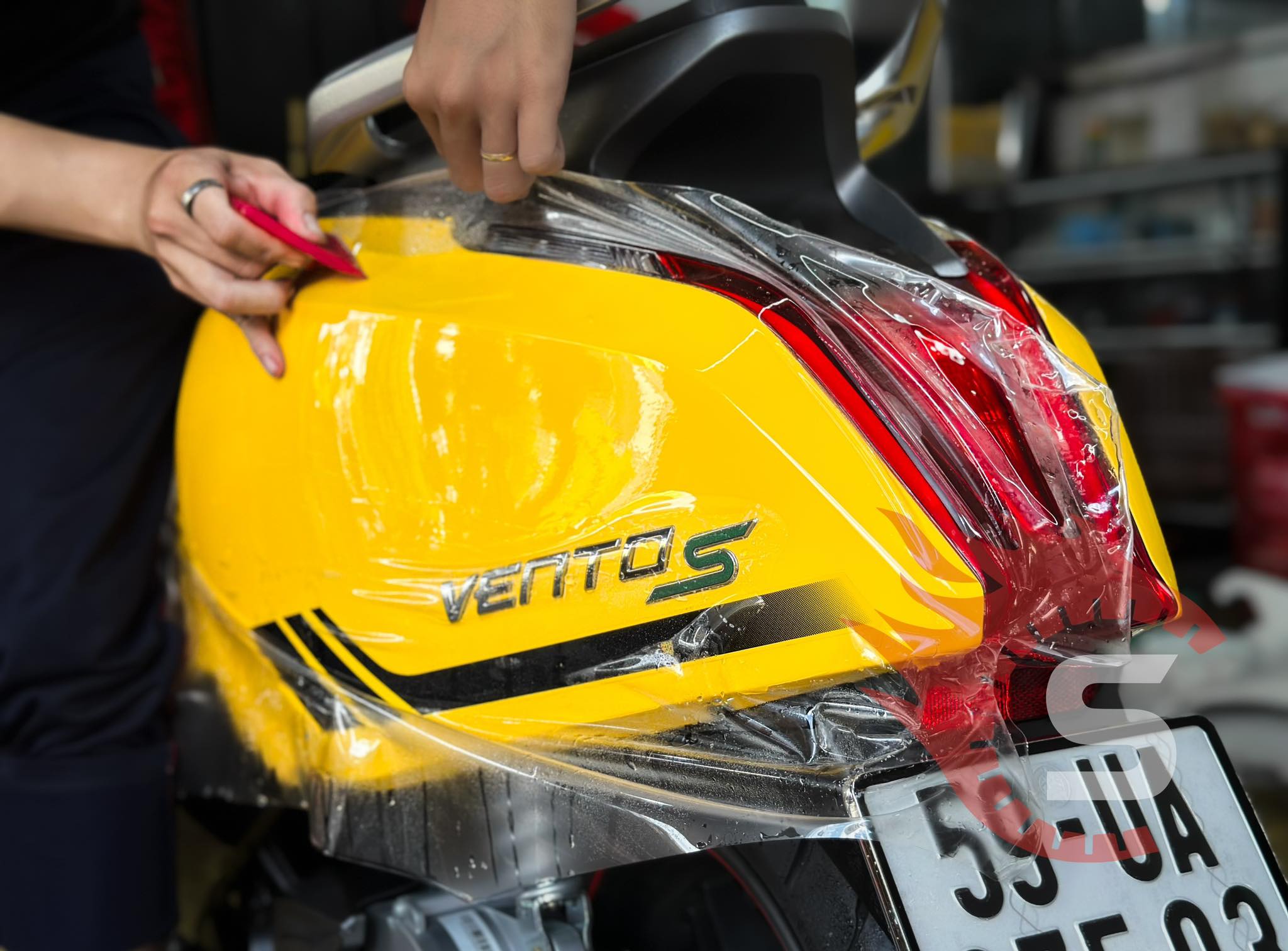 4. Hoàn Thiện: Kiểm tra lại toàn bộ bề mặt xe, loại bỏ các bọt khí nhỏ và làm sạch phim để đảm bảo độ bóng và tính thẩm mỹ.