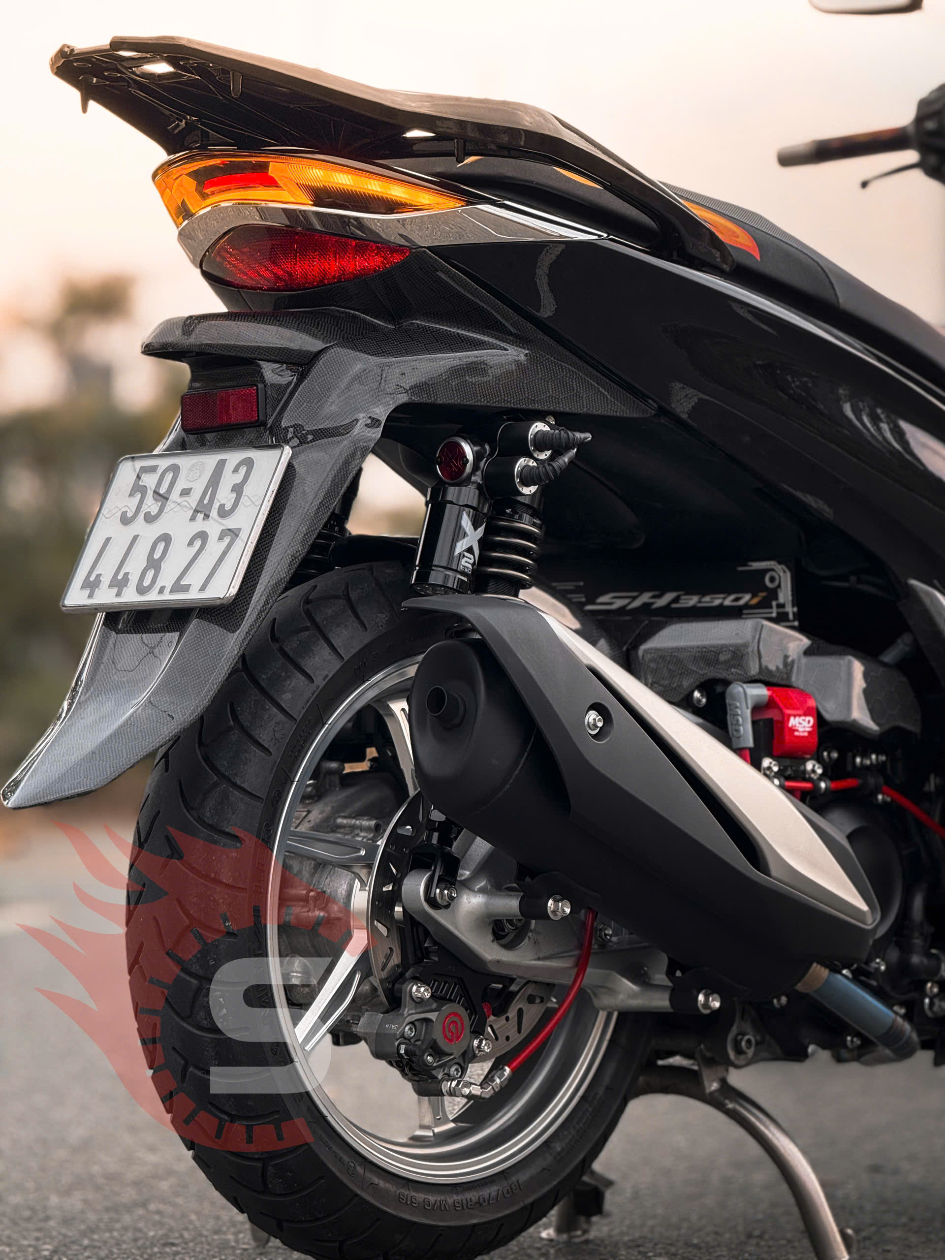 - Nếu kết hợp với các bản độ khác như phuộc Shark x2, combo đèn Audi, heo Brembo, chiếc xe sẽ có một diện mạo hoàn toàn mới, khác biệt so với SH350i zin.