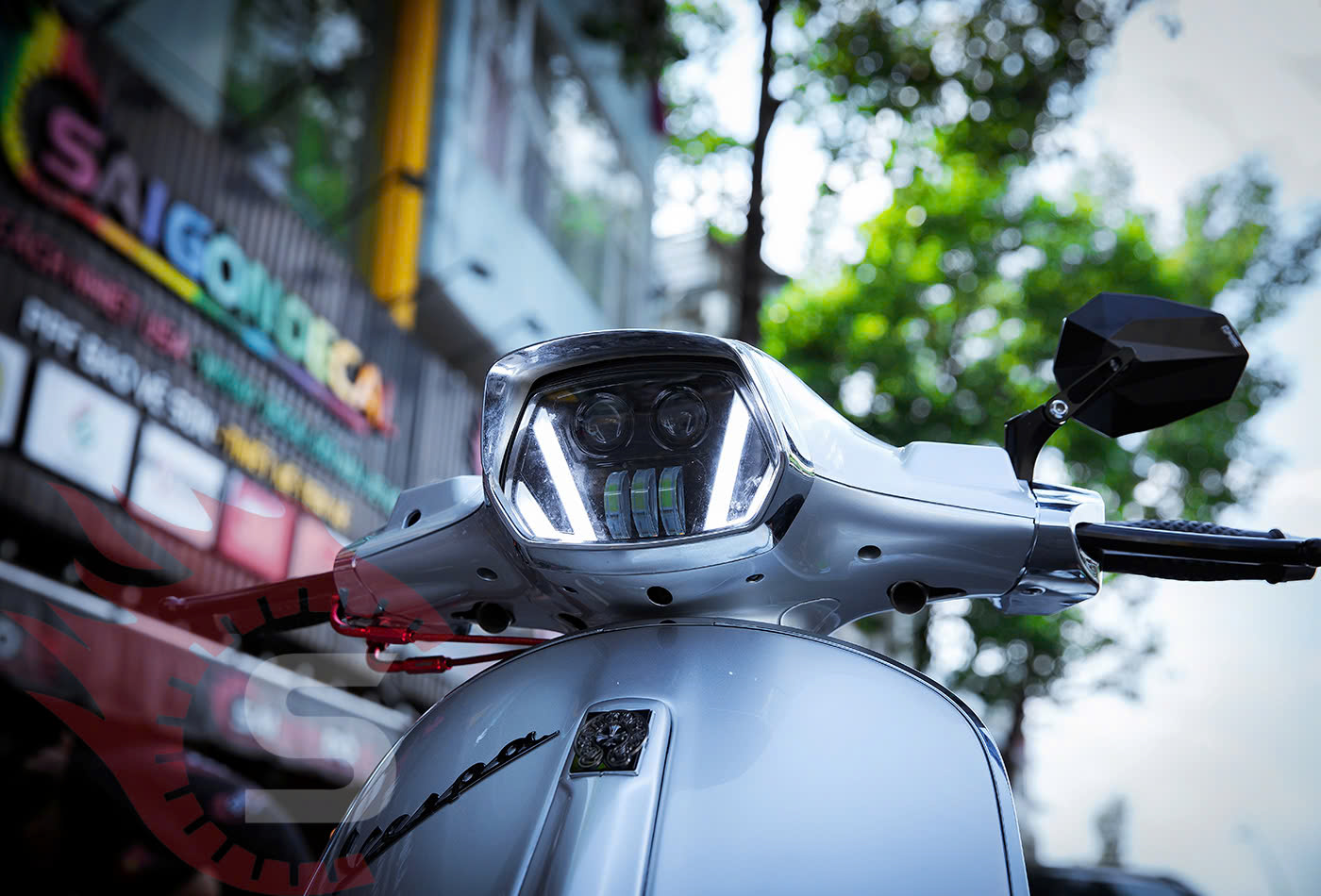 Sự kết hợp giữa đèn pha Tun V2, tay thắng CNC Zelioli và mâm CNC x1r mang đến cho chiếc Vespa Sprint một vẻ ngoài thể thao, hiện đại và sang trọng. Những phụ kiện này giúp chiếc xe của bạn trở nên nổi bật trong đám đông, tạo ấn tượng mạnh mẽ ngay từ cái nhìn đầu tiên.