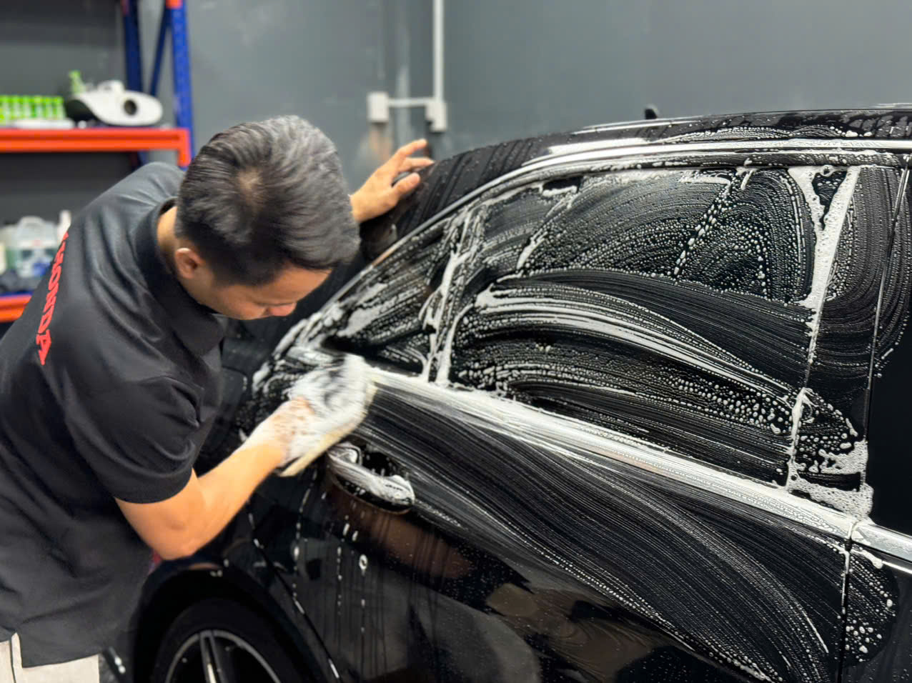 • Kiểm tra và làm sạch xe: Xe sẽ được làm sạch kỹ lưỡng để đảm bảo bề mặt sơn hoàn toàn không còn bụi bẩn, dầu mỡ.